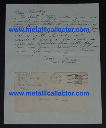 Mrs. Burton wrote this letter to a Metallica fan about 3 months after Cliff's death.